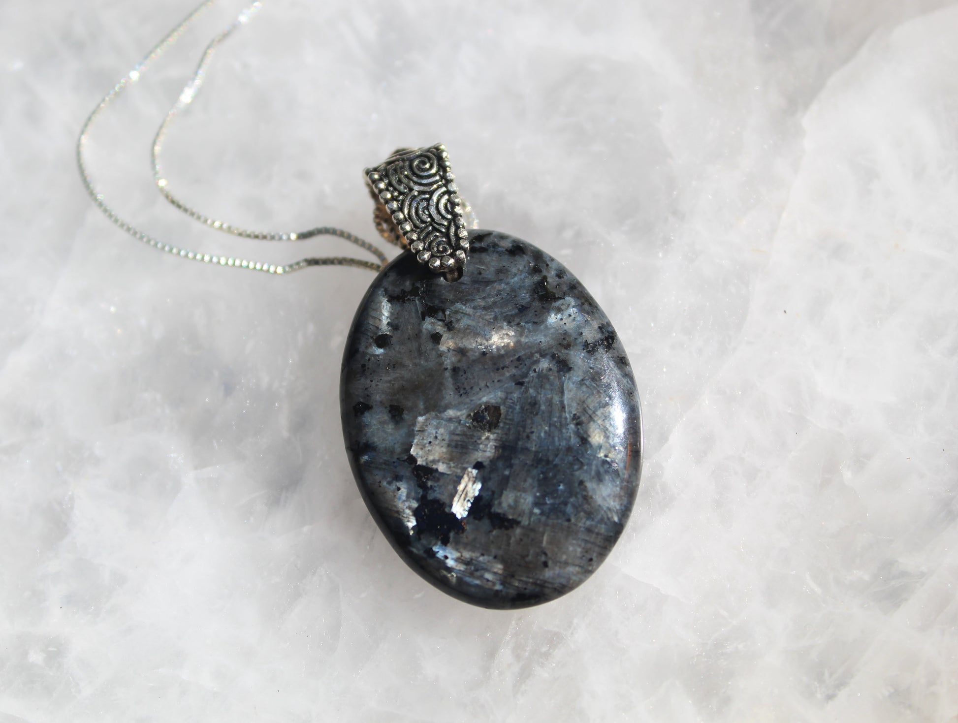 Black Labradorite Pendant Necklace with 20” Sterling Silver chain