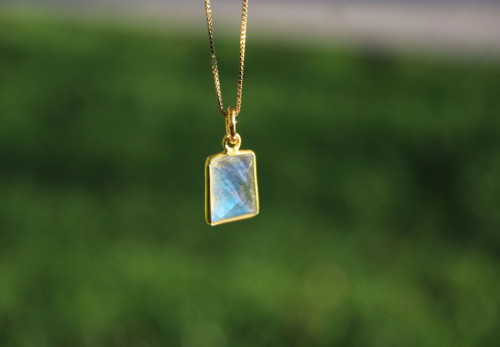 Natural Rainbow Moonstone Gemstone Pendant Necklace with 20” 14k Gold-Plated Sterling Silver chain