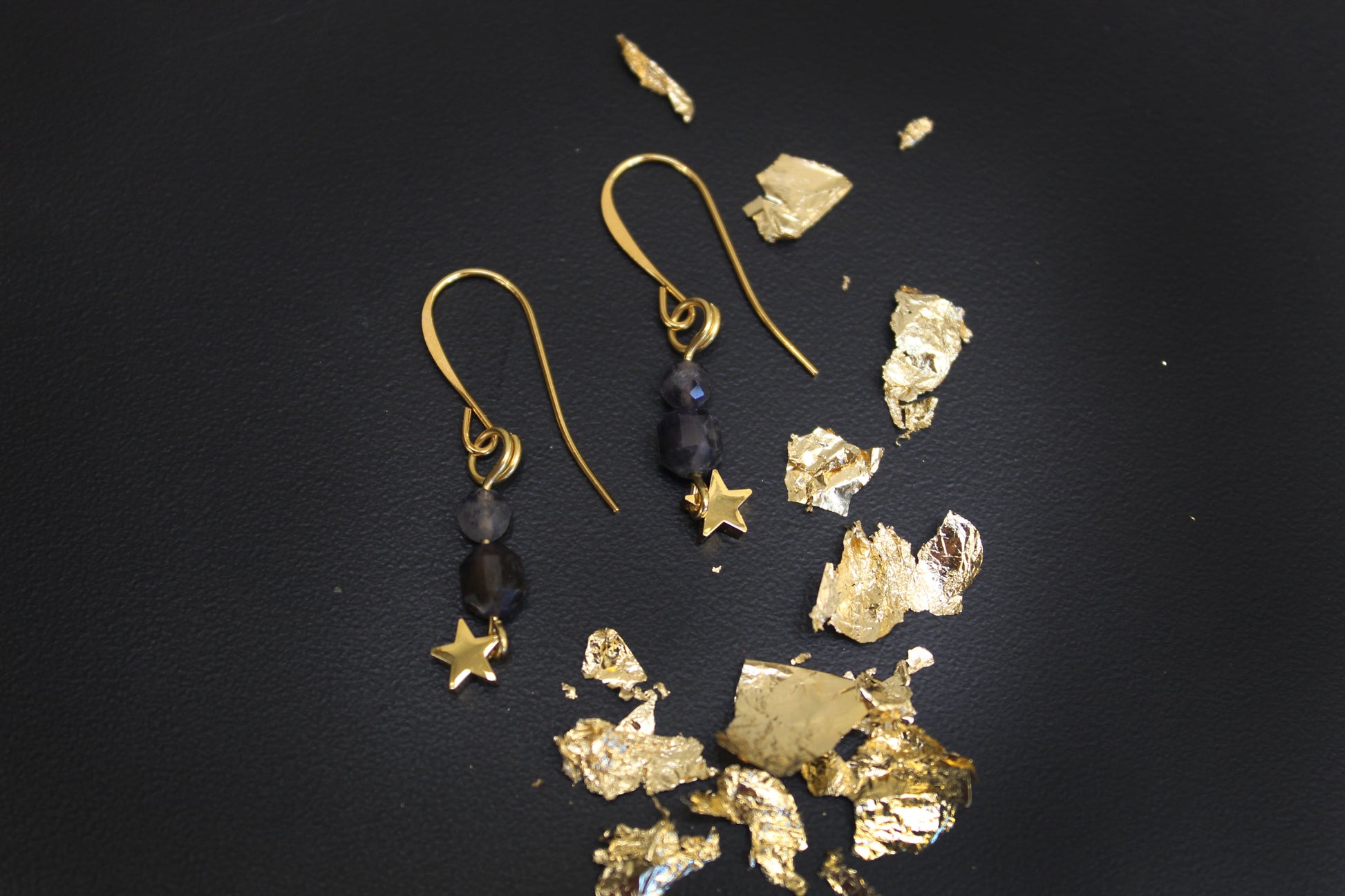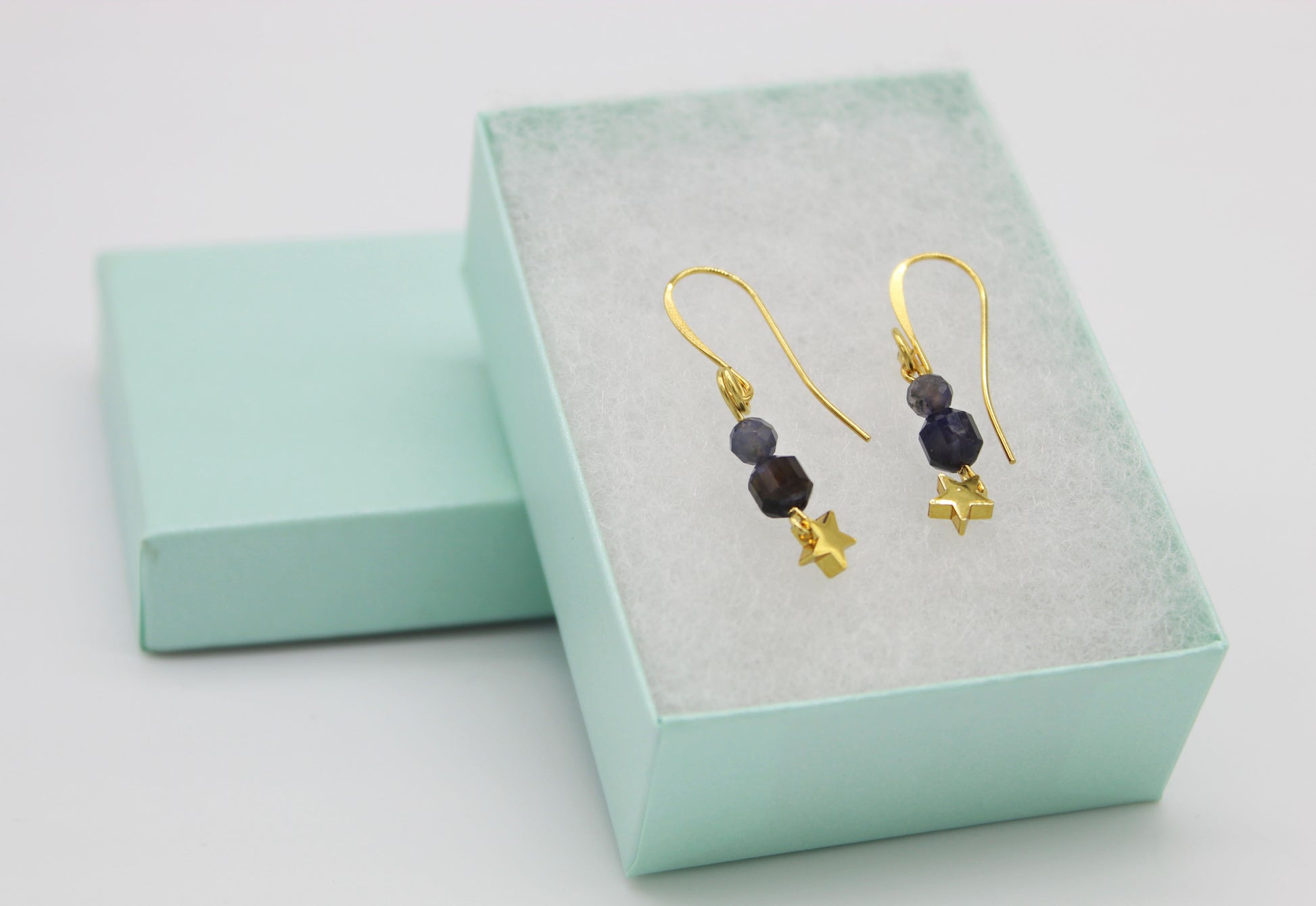 Blue Iolite Celestial Gold Drop Earrings