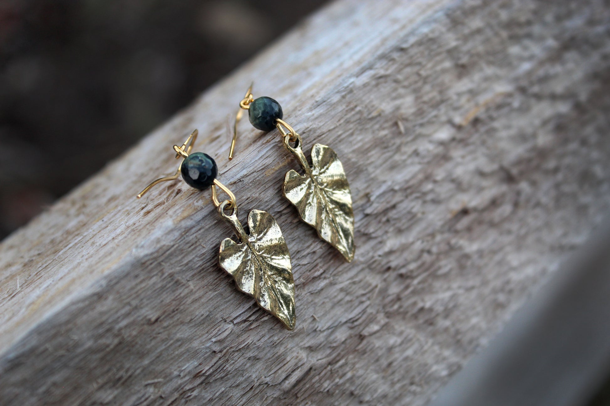 Moss Agate Falling Leaves Gold Earrings