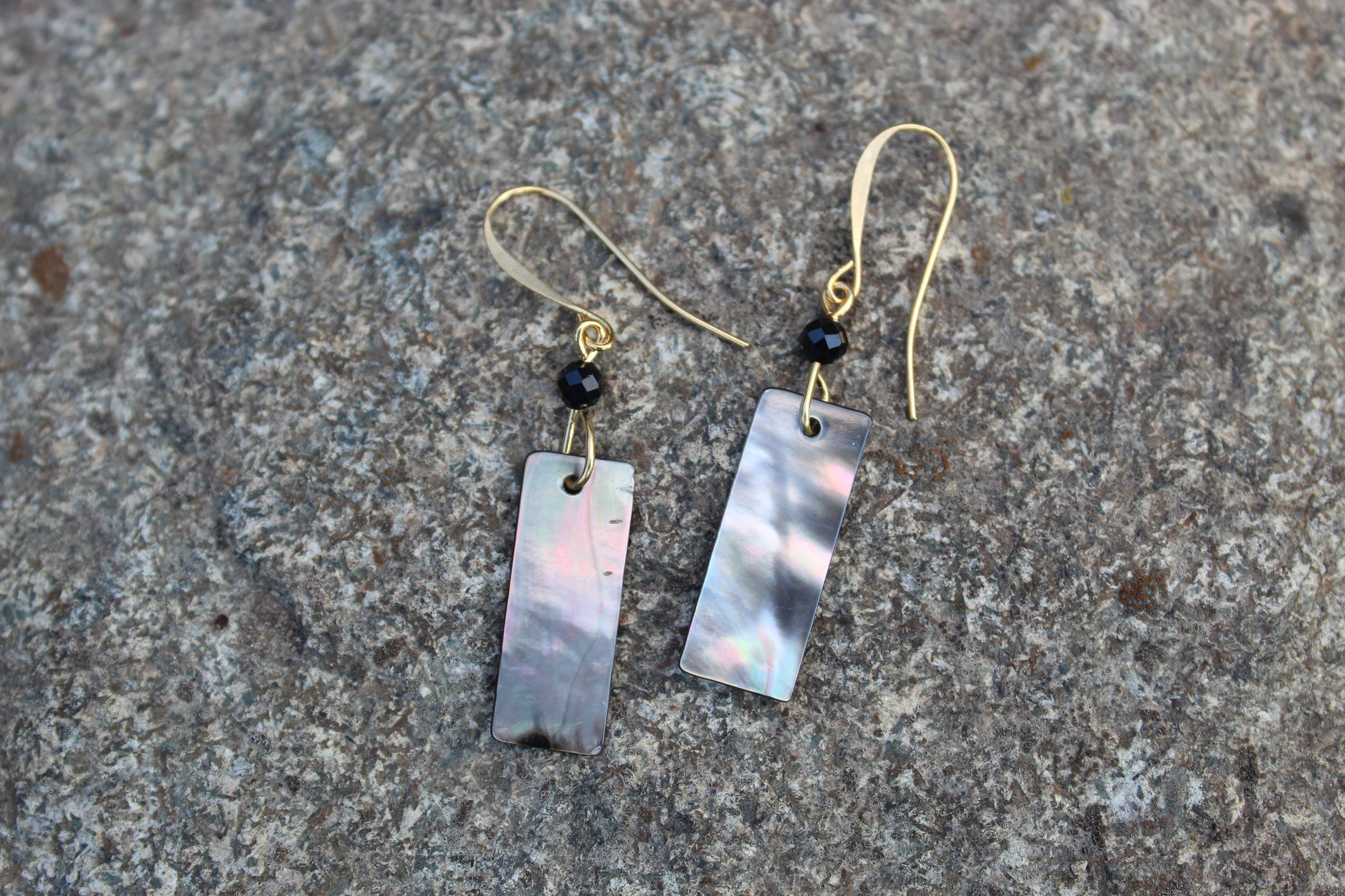 Cut Shell Black Spinel Gemstone Earrings