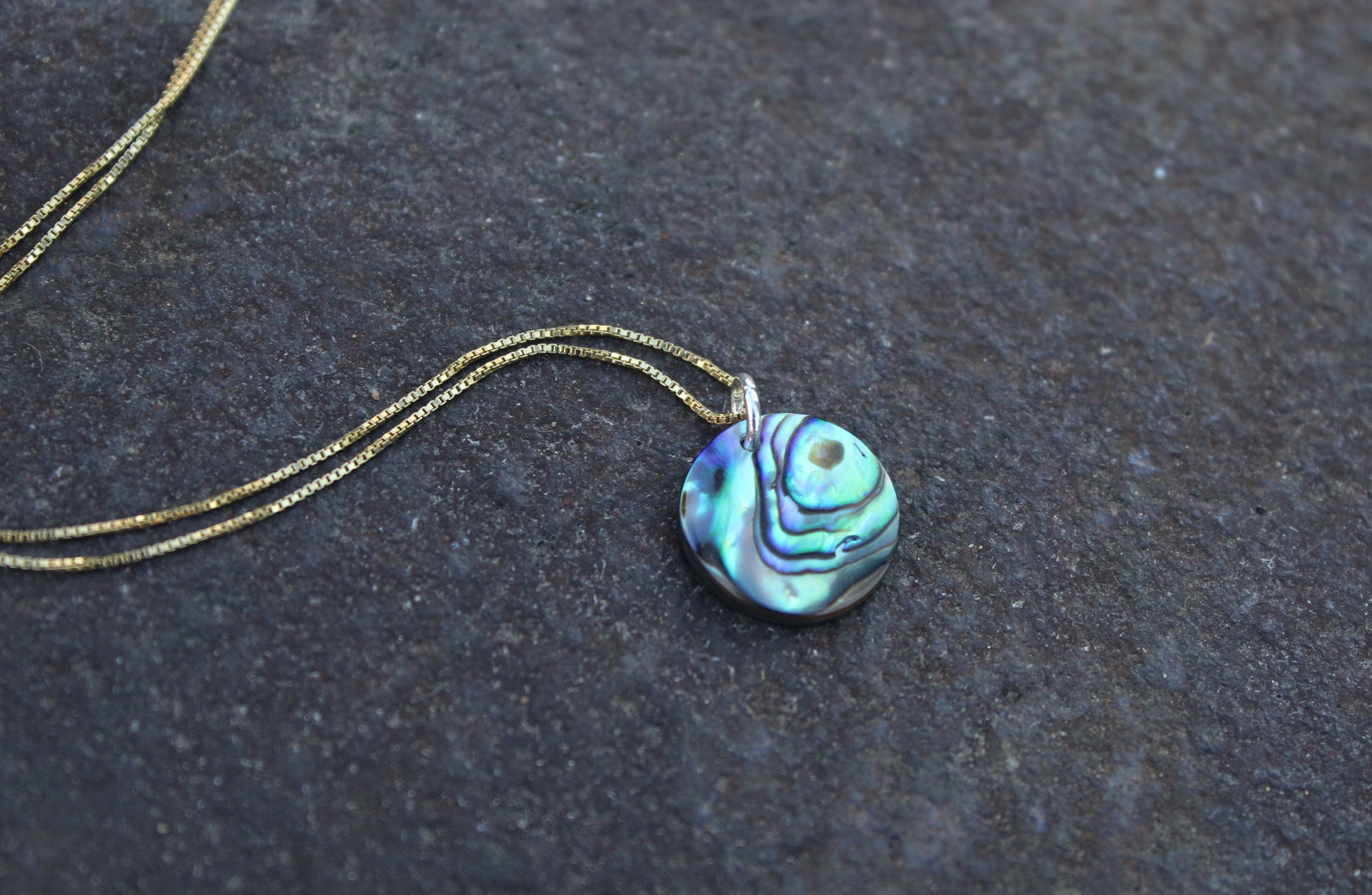 Hand Cut Abalone Pendant Necklace with 18” Sterling Silver chain