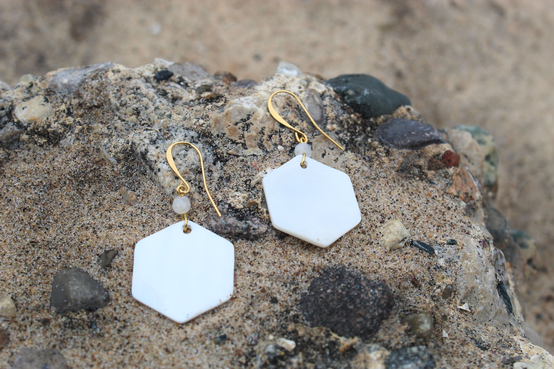 Moonstone and Hexagonal Cut Mother of Pearl Earrings